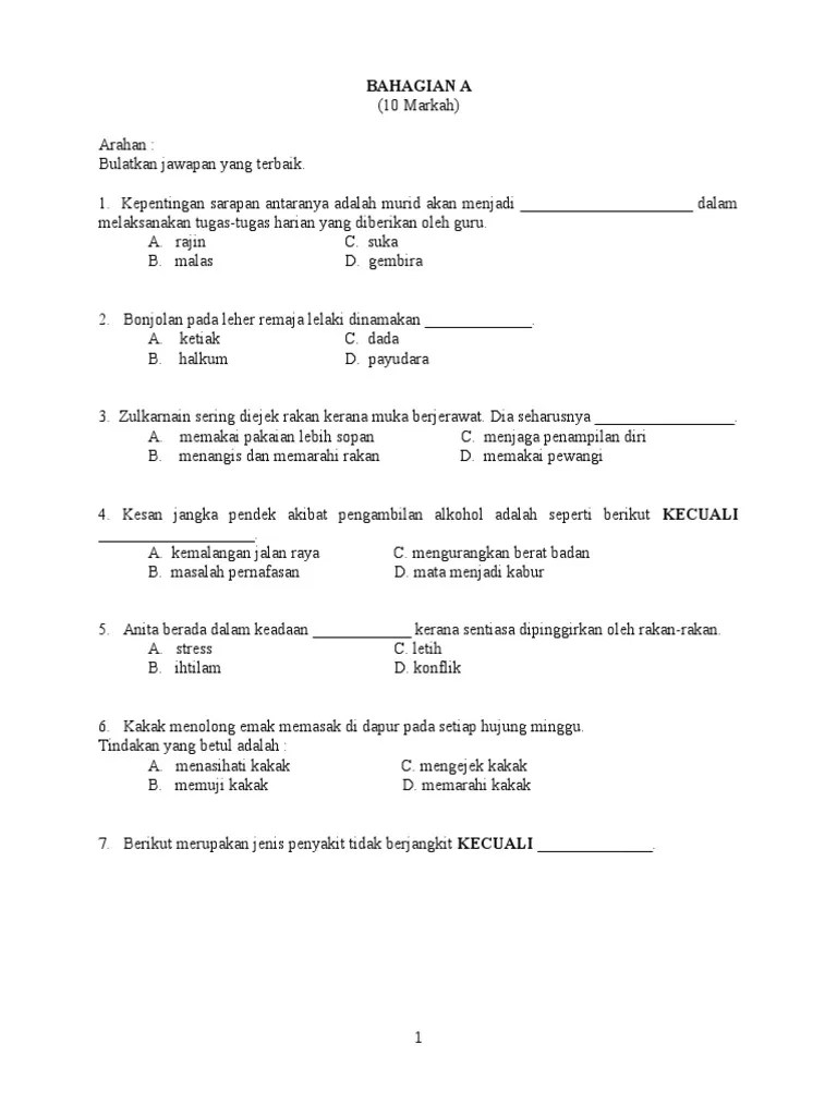 Koleksi soalan dan latihan pendidikan jasmani dan . Koleksi soalan latihan nota modul pendidikan kesihatan tahun 1 jawapan. Bersikap amanah dan jujur dalam setiap pekerjaan akan .